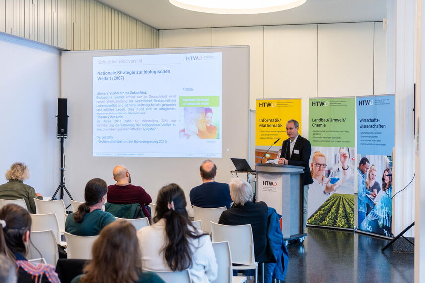 Am 26.01.24 fand die Green Transition Conference an der HTWD in Dresden unter dem Thema "Biodiversitätsmanagement als Wettbewerbsvorteil im Kontext der EU-Taxonomie?", mit knapp 50 Teilnehmern aus Unternehmen, wissenschaftlichen Institutionen, Hochschulen und Behörden statt. Das Ziel der Veranstaltung: Unternehmer, Betriebswirtschaftler und Ökologen zusammenbringen, um über den Schutz von biologischer Vielfalt in Austausch zu treten. Organisiert wurde die Veranstaltung gemeinsam vom Transferzentrum für Biodiversität - BIOZENTRA und der Professur für Betriebswirtschaftslehre insb. Umweltmanagement (Prof. Dr. Remmer Sassen) des Internationalen Hochschulinstituts (IHI) Zittau der Technischen Universität (TU) Dresden