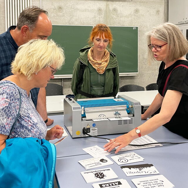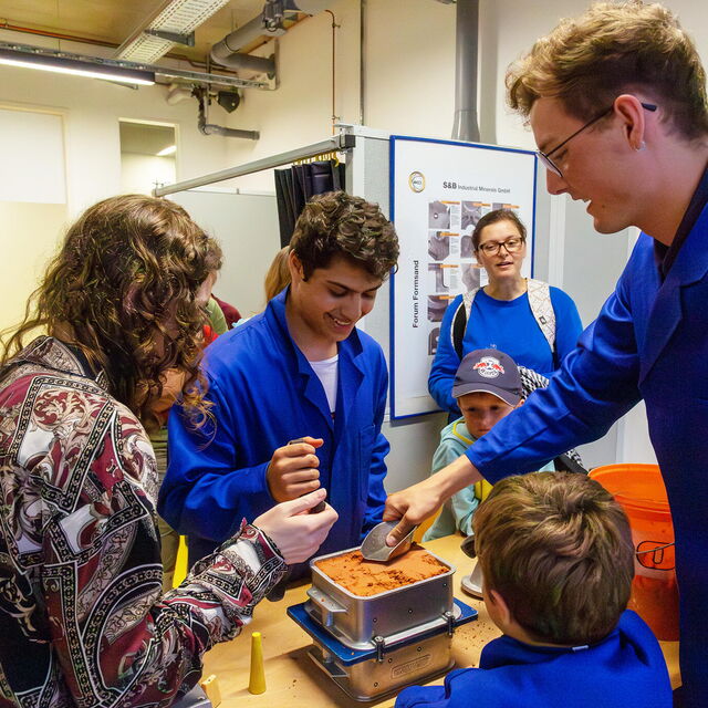 Wenige Meter weiter lockten auch die Hochschulbibliothek und das Laborgebäude Naturwissenschaften sowie das Medienzentrum und der Gutenbergbau Besuchende an. Dort lernten sie auf spielerische Weise etwas zum neuen Verbundwerkstoff Carbonbeton, der nicht nur eine schlankere und nachhaltigere Bauweise vorantreibt, sondern auch dank der elektrischen Leitfähigkeit des Carbons funktionalisiert werden kann. Zudem erfuhren Interessierte viel zum Druck- und Verpackungswesen, das über das Zeitung-Drucken weit hinaus geht. „Dir Kinder waren mit Begeisterung dabei. In Erwachsenenrunden gab es meist eine rege Diskussion zum Thema Verpackung, Verpackungsrecycling und Nachhaltigkeit“, sagte Prof. Eugen Herzau, der in seinen Laborführungen „Geheimnisse der Verpackungstechnik“ lüftete. Viele Besucherinnen und Besucher freuten sich auch, einen individuell bedruckten Tischtennisball oder eigens versiegelte Gummibärenjoghurtbecher mit nach Hause nehmen zu können. Einblicke in sonst verborgene Themen gewährten auch die Chemikerinnen und Chemiker der HTWK Leipzig bei ihren Laborführungen, bei denen sowohl Detektive der Chemie am Werk sind als auch Gefahren für Kunstwerke gezeigt wurden.