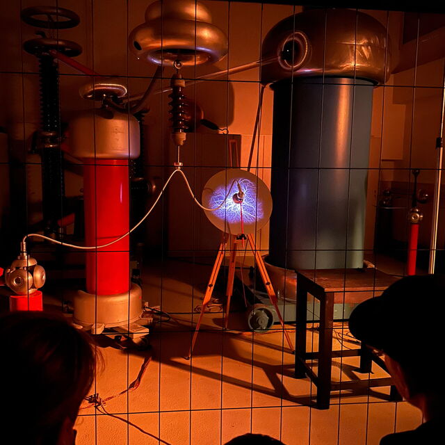 Weitere Highlights warteten im Wiener-Bau in der Wächterstraße: Im HTWK-Hochspannungslabor zeigte Prof. Carsten Leu physikalische Experimente, dank derer Interessierte faszinierende Wirkungen von Elektrizität erleben konnten, darunter Gasentladungen in der Luft, gleitend auf Oberflächen und leuchtend im sogenannten „Gasraum“. Spannend waren auch die verschiedenen Sensoren, die Gäste anfassen und ausprobieren konnten, sowie die Einblicke in Medizintechnik und ChatGPT als Form der künstlichen Intelligenz.