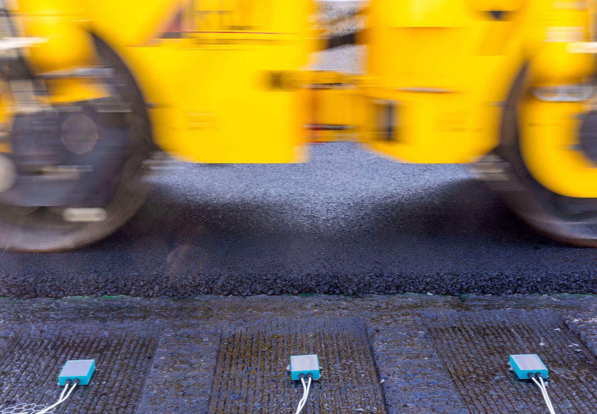 So ein Einbau ist jedes Mal ein heikler Moment für die Technik: Diese muss zum einen die Einbautemperatur des frischen Asphalts von etwa 150 Grad Celsius überstehen und zum anderen die mechanische Beanspruchung durch die Walze aushalten, mit der die obere Deckschicht verdichtet wird. In der Machbarkeitsstudie im Frühjahr testeten die Forschenden für den Zeitraum von sechs Monaten mehrere Prototypen mit verschiedenen Sensoren. So wollten sie prüfen, wie das neue System in den nächsten Wochen und damit mittelfristig funktioniert.